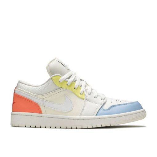Jordan 1 Low To My First Coach – Multicolor leather design with coral heel, embossed red ‘Wings’ logo, and premium materials. Released on May 7, 2021, for $120.