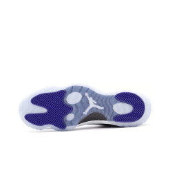 The Air Jordan 11 Retro Low ‘Concord’ reimagines the iconic OG colorway as a sleek low-top. The material build is faithful to the 1995 original, featuring a white ballistic mesh upper with a contrasting black patent leather overlay._x000D_