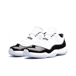 The Air Jordan 11 Retro Low ‘Concord’ features a classic design with its crisp white patent leather upper and black accents. This model includes key Jordan 11 elements such as a visible Air-Sole unit and a translucent outsole. The ‘Concord’ edition offers a timeless look with a modern twist, making it a sought-after choice for collectors and fans alike. The clean colorway and premium construction ensure both style and comfort.