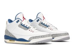 The Air Jordan 3 Retro ‘True Blue’ 2001 offers a nostalgic look with its original blue and white colorway. Featuring premium leather and the signature elephant print, this model pays homage to a classic design while offering modern comfort.