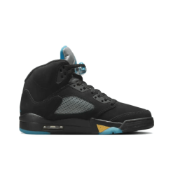 The Aqua colorway is taking a new Air Jordan retro silhouette with the release of the Jordan 5 Retro Aqua. The Jordan 5 Aqua is the colorway of the Jordan 5 to release in 2023.The Retro Air Jordan 5 Aquas have a black nubuck upper with a black midsole, and white air unit._x000D_
