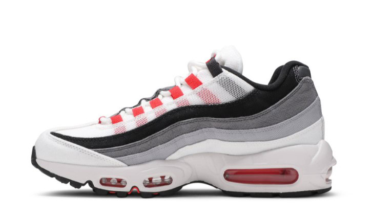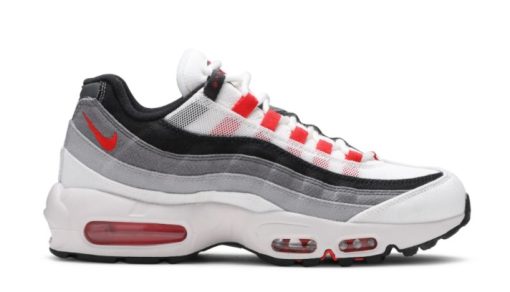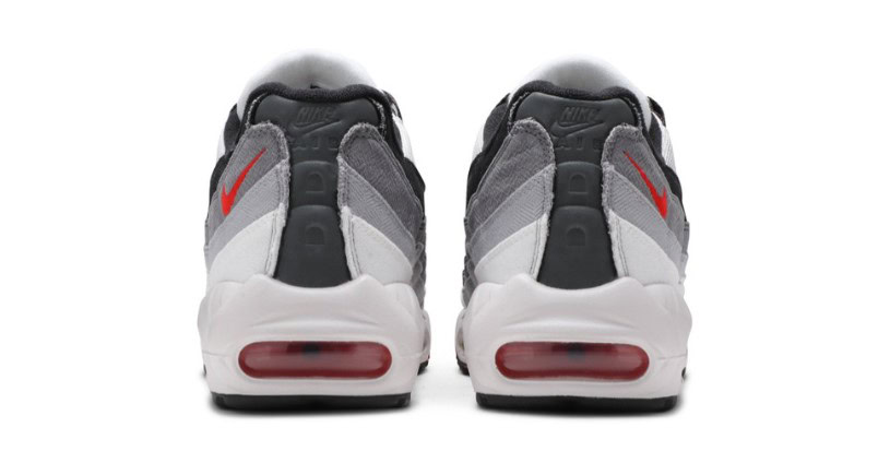 The Air Max 95 QS Japan recognizes the countrys influence on American style and culture. The upper is crafted from overlapping layers of textile, highlighted by varying weaves and a gradient color scheme that fades from black to grey to white on the side panels._x000D_