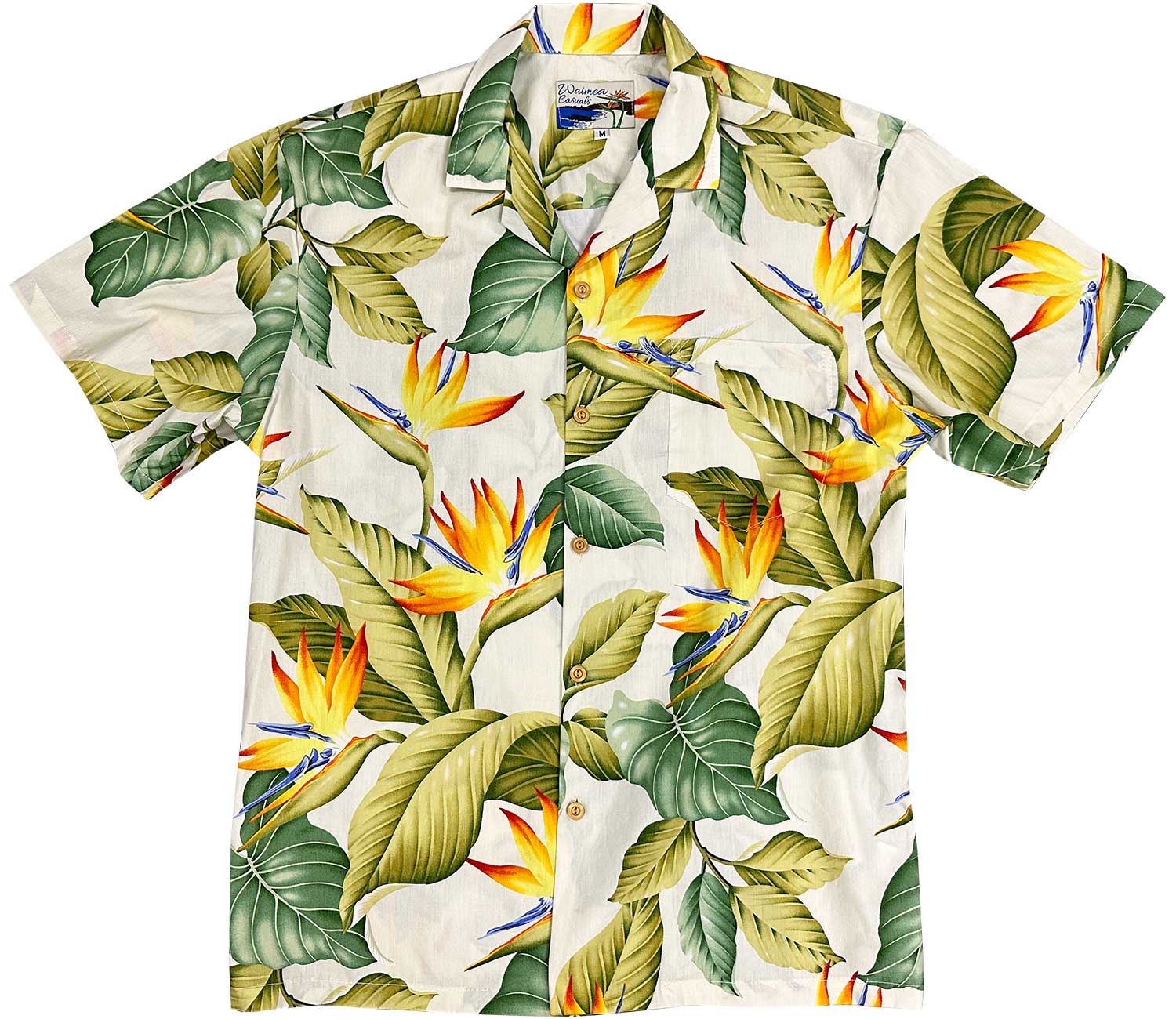 Cream Hawaiian Shirt with Airbrush Bird of Paradise – Men’s Casual Tropical Wear