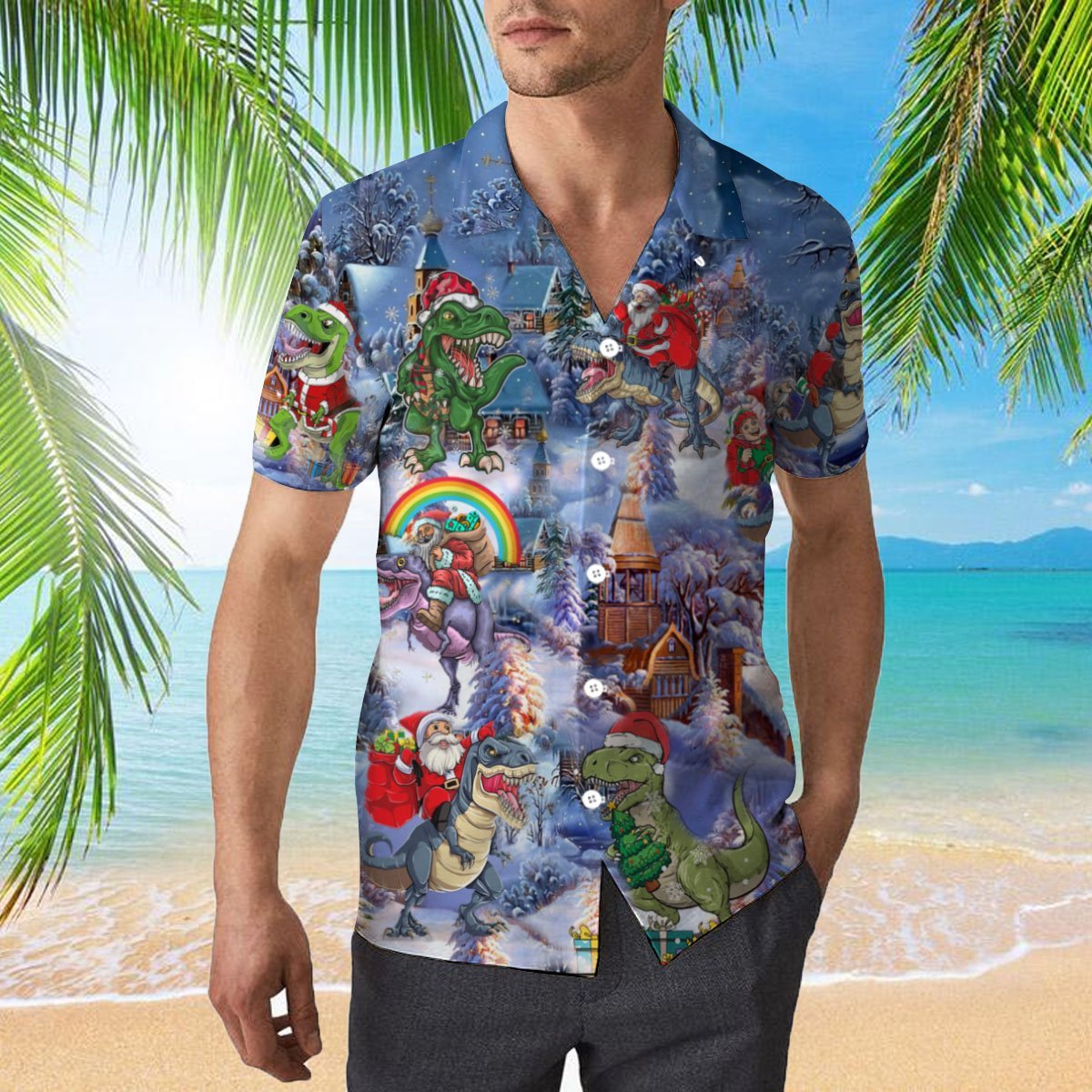 All Santa Want For Christmas Is T Rex Hawaiian Shirt | For Men & Woman | Adult |- For men and women – Fanshubus