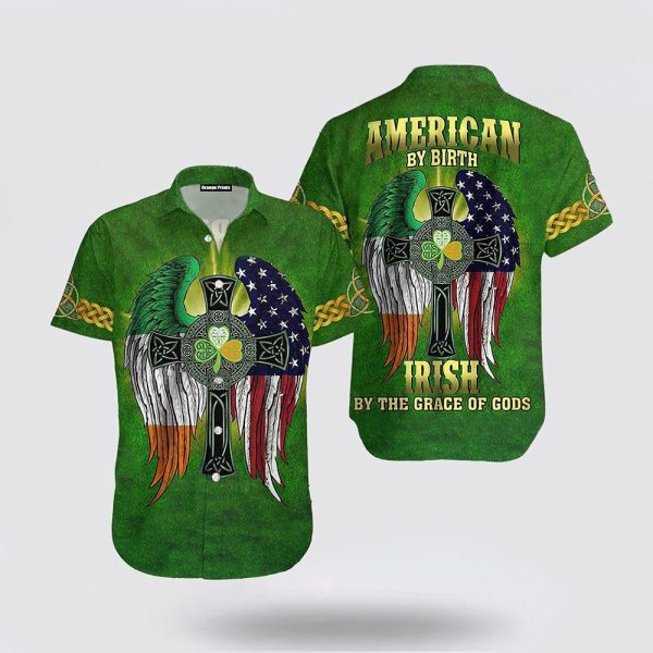 American By Birth Irish St Patrick Day Hawaiian Shirt, St Patricks Day Shirts, Shamrock Hawaiian Shirt