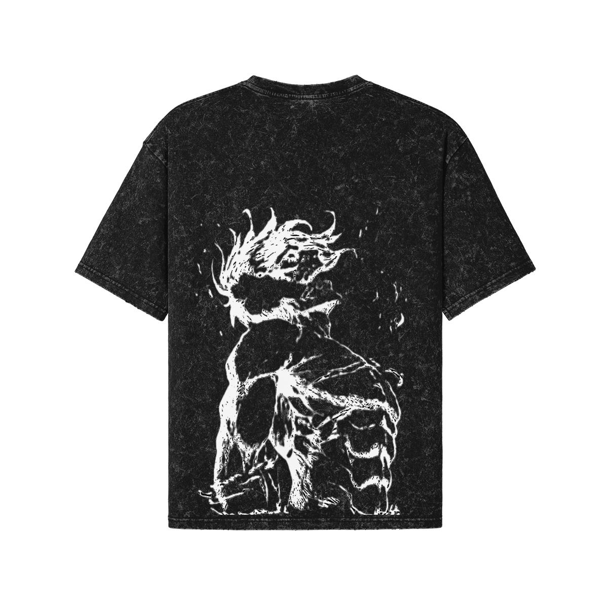howcase your love for Attack on Titan with this Acid Washed T Shirt, featuring an oversized Eren Yeager design. With its acid-wash effect, this tee offers a rugged, vintage streetwear look, making it a standout piece for anime fans. Its oversized fit ensures a relaxed and stylish appearance, perfect for casual wear or layering with your favorite outfits.