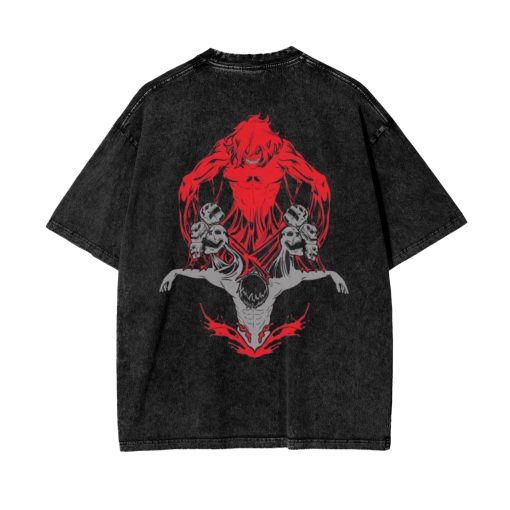 howcase your love for Attack on Titan with this Acid Washed T Shirt, featuring a bold oversized Eren Yeager design. The acid-wash effect creates a rugged, vintage streetwear look, making it the perfect choice for anime fans who love unique and edgy fashion. Its oversized fit ensures maximum comfort while delivering an effortlessly stylish vibe.