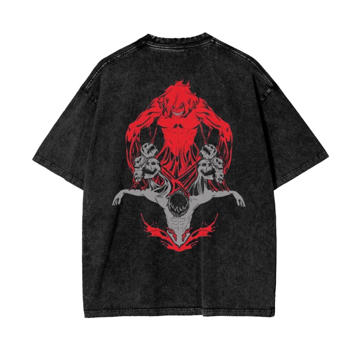 A perfect gift for anime enthusiasts, this washed t-shirt combines comfort, fashion, and anime culture in one stylish piece. Order now and unleash your inner Titan with confidence! 🚀