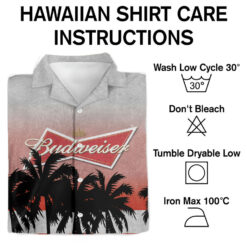 This Budweiser-themed Hawaiian Shirt brings together refreshing beer culture and breezy tropical aesthetics. Crafted from lightweight polyester, it fits comfortably for men of all ages and body types. Professional printing delivers long-lasting vibrant colors and detailed graphics. Machine washable and wrinkle-free. Care instructions: Do not bleach, do not tumble dry, cool iron, do not dry clean.