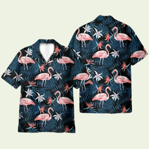 Celebrate the tropics with the Flamingo Palm Green Leaves Hawaiian Shirt for Men. Featuring bold hibiscus flowers, flamingos, and tropical leaves, this shirt is perfect for beach days, vacations, or casual summer outings. Made from Polyester, it?s easy to care for and wrinkle-resistant, offering both comfort and style.