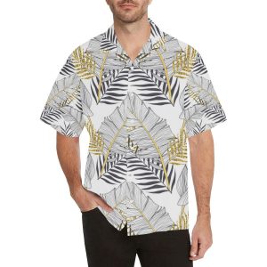Gold Glitter Tropical Palm Leaves Hawaiian Shirt- For men and women – Fanshubus