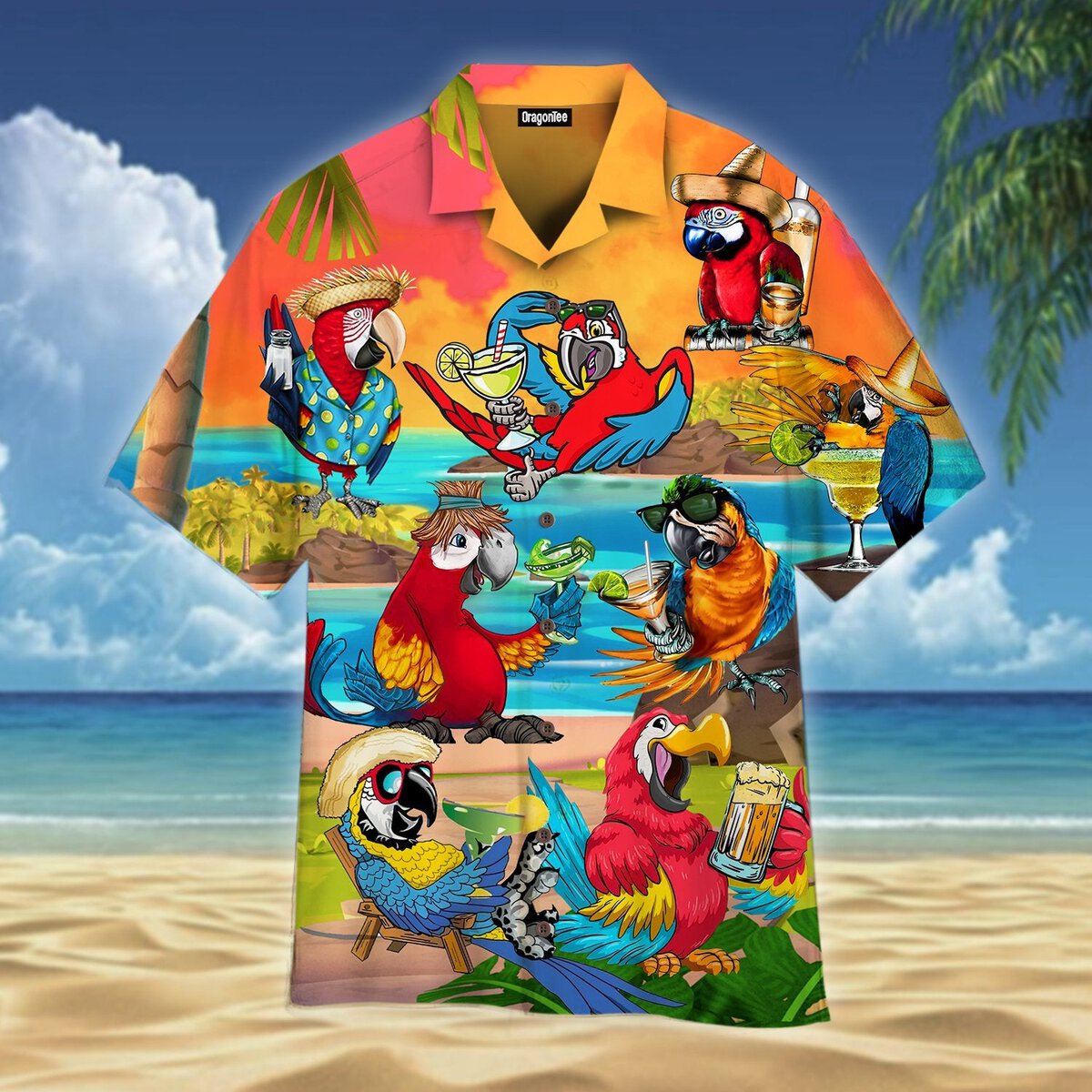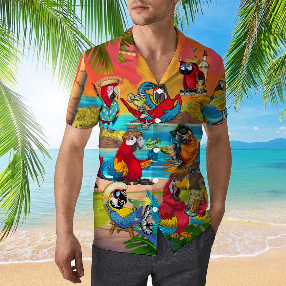 Happy Drinking Parrot Hawaiian Shirt- For men and women – Fanshubus