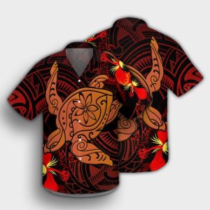 Hawaiian Hibiscus Plumeria Red Big Turtle Hawaiian Shirt- For men and women – Fanshubus