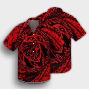 Hawaiian Kanaka Honu Hibiscus Tornando Red Hawaiian Shirt- For men and women – Fanshubus