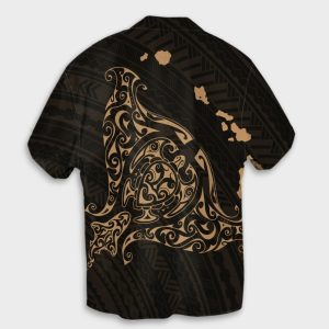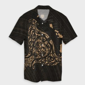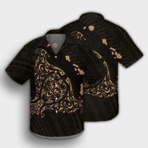 Hawaiian Map Manta Ray Gold Hawaiian Shirt- For men and women – Fanshubus