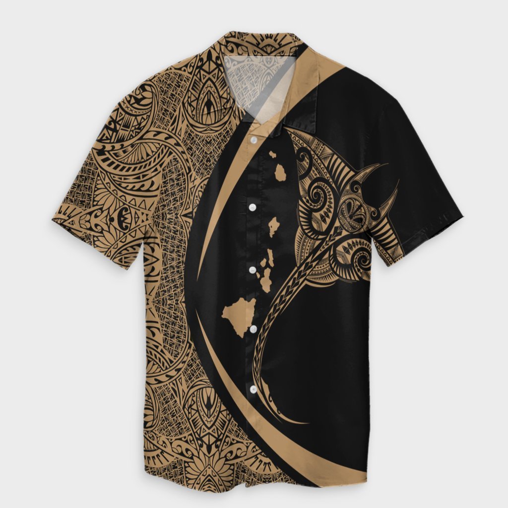 Hawaiian Map Manta Ray Hawaiian Shirt – Gold- For men and women – Fanshubus