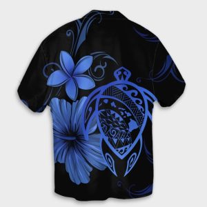 Hawaiian Map Turtle Hibiscus Plumeria Hawaiian Shirt – Blue- For men and women – Fanshubus