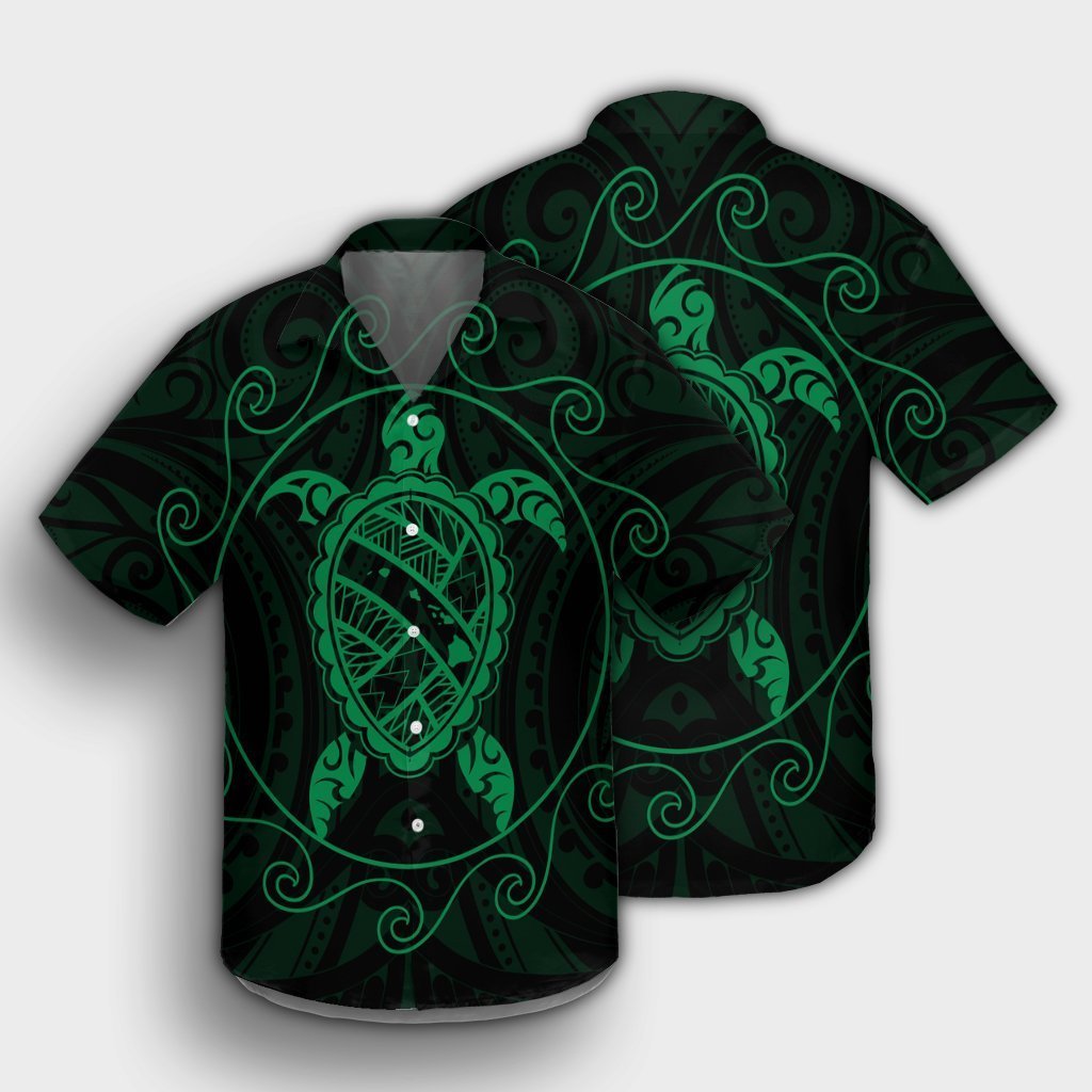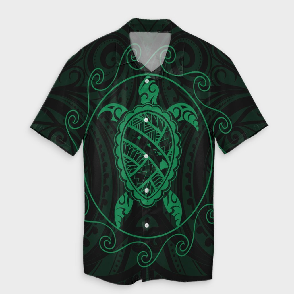 Hawaiian Map Turtle Wave Hawaiian Shirt Green- For men and women – Fanshubus