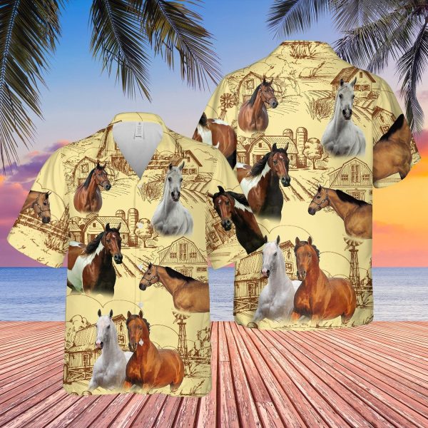 Horse Country barn pencil drawing Hawaiian Shirt – For Men and Women Fanshubus