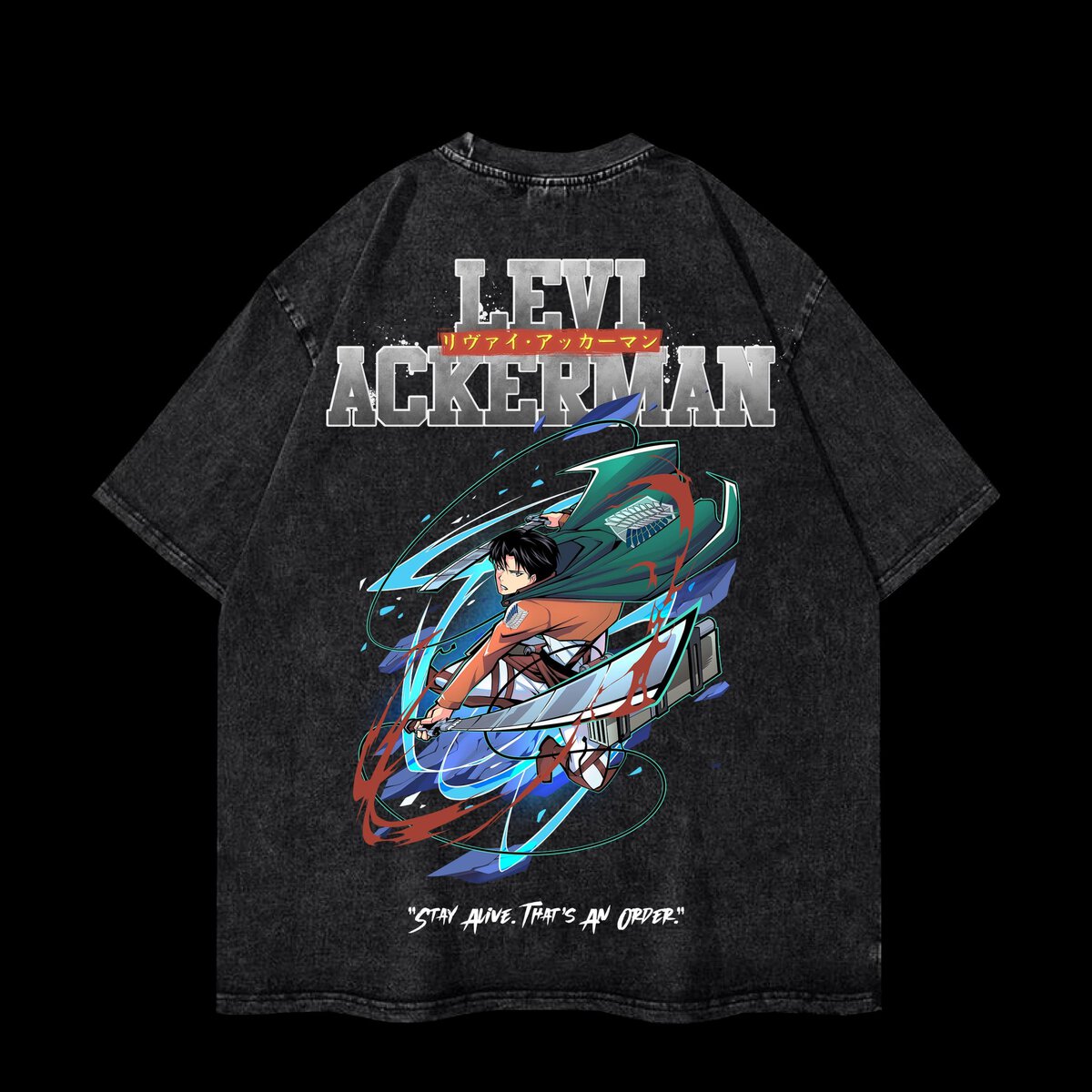 Elevate your anime fashion game with this Levi Acid Washed T Shirt, inspired by Attack on Titan. Featuring a bold oversized design, this vintage-style washed t-shirt is perfect for anime fans who love streetwear fashion. The acid-wash effect adds a unique, rugged look, making it a standout piece in any wardrobe.