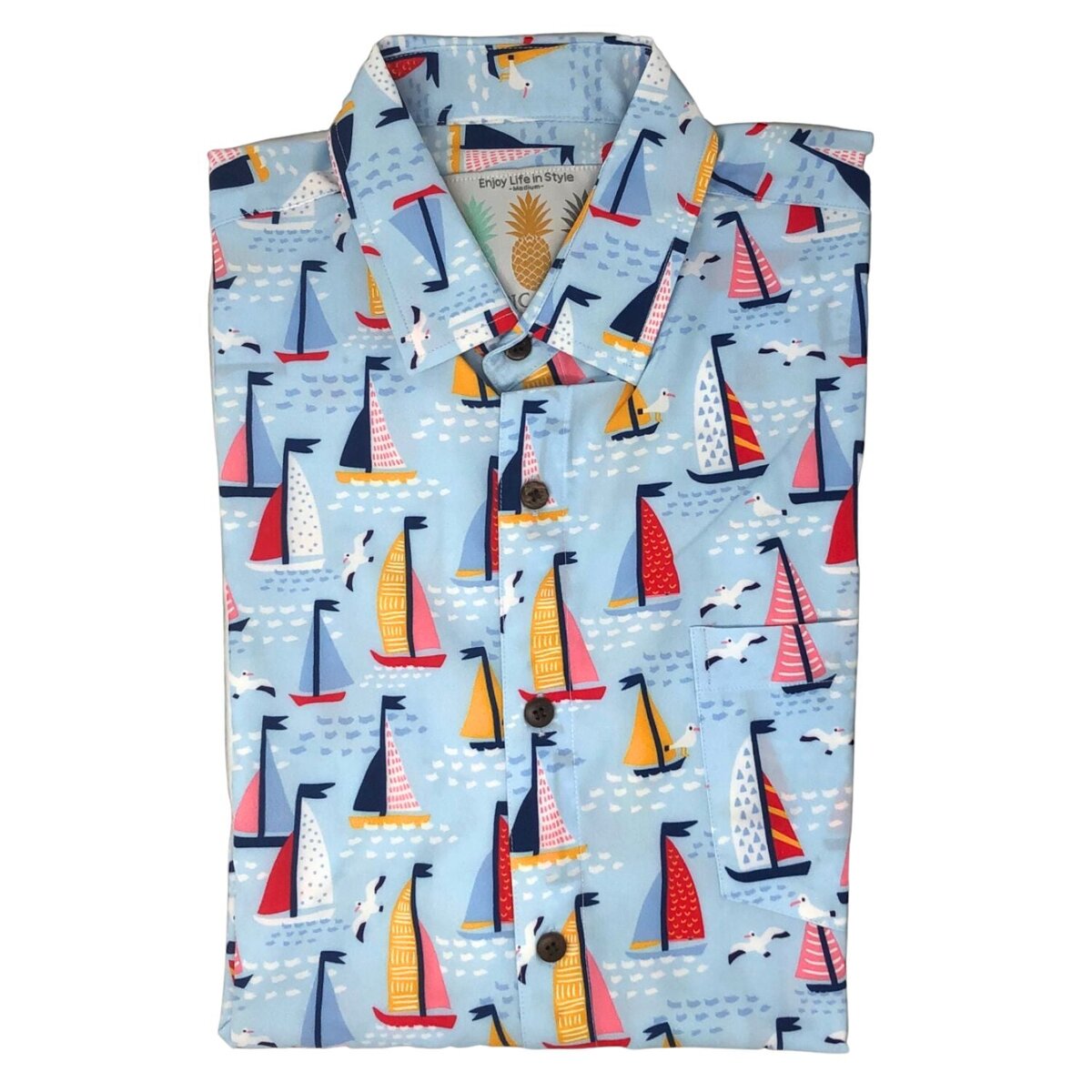 Set sail into summer with this men?s Hawaiian shirt featuring a Sailin’ Away print. Perfect for beach vacations, nautical getaways, or anyone who enjoys adventurous and relaxed summer fashion, this shirt adds a refreshing touch to your tropical look. Crafted from breathable polyester, it offers lightweight comfort and a relaxed fit?ideal for beach days, casual hangouts, or oceanic adventures. The Sailin’ Away design brings a calming, adventurous vibe to your summer style. Material: Polyester Design: Sailin’ Away print Fit: Regular fit, lapel collar, short sleeves Care: Machine wash cold, tumble dry low, do not bleach A must-have Hawaiian shirt for men who love nautical designs, beach vibes, and making a statement this summer.