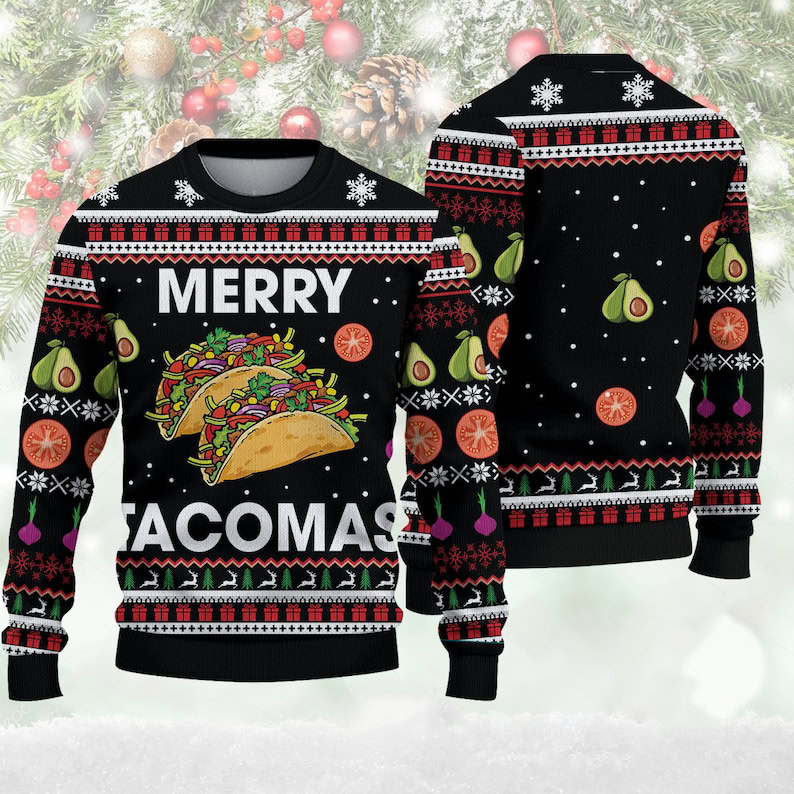 Merry Tacomas Ugly Sweater| Woolen Sweater Christmas Gift For Holiday| Tacos Ugly Christmas Sweater, Jumper – Fanshubus