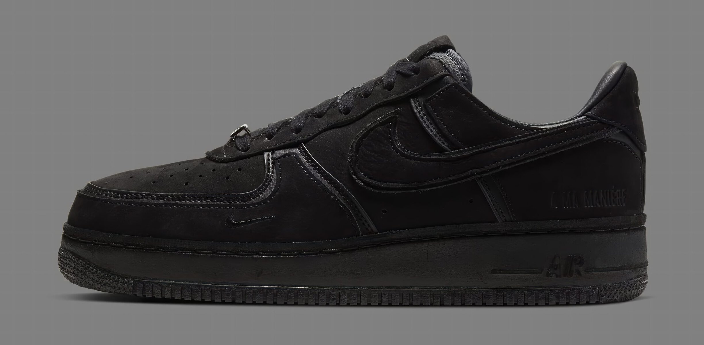 Dressed in a stealthy black tumbled leather upper, this sneaker features suede overlays and waxed laces for an elevated touch. The A Ma Maniére logo is subtly embossed on the heel, while a handcrafted feel is maintained through premium materials and meticulous detailing. A co-branded insole and tongue label further distinguish this collaboration, emphasizing the boutique’s commitment to refined design. Sitting atop a sail midsole and black outsole, this Air Force 1 delivers a timeless yet modern appeal.