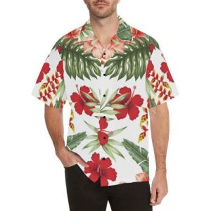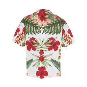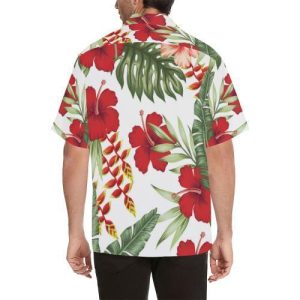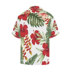 Red Hibiscus Tropical Flowers Hawaiian Shirt- For men and women – Fanshubus