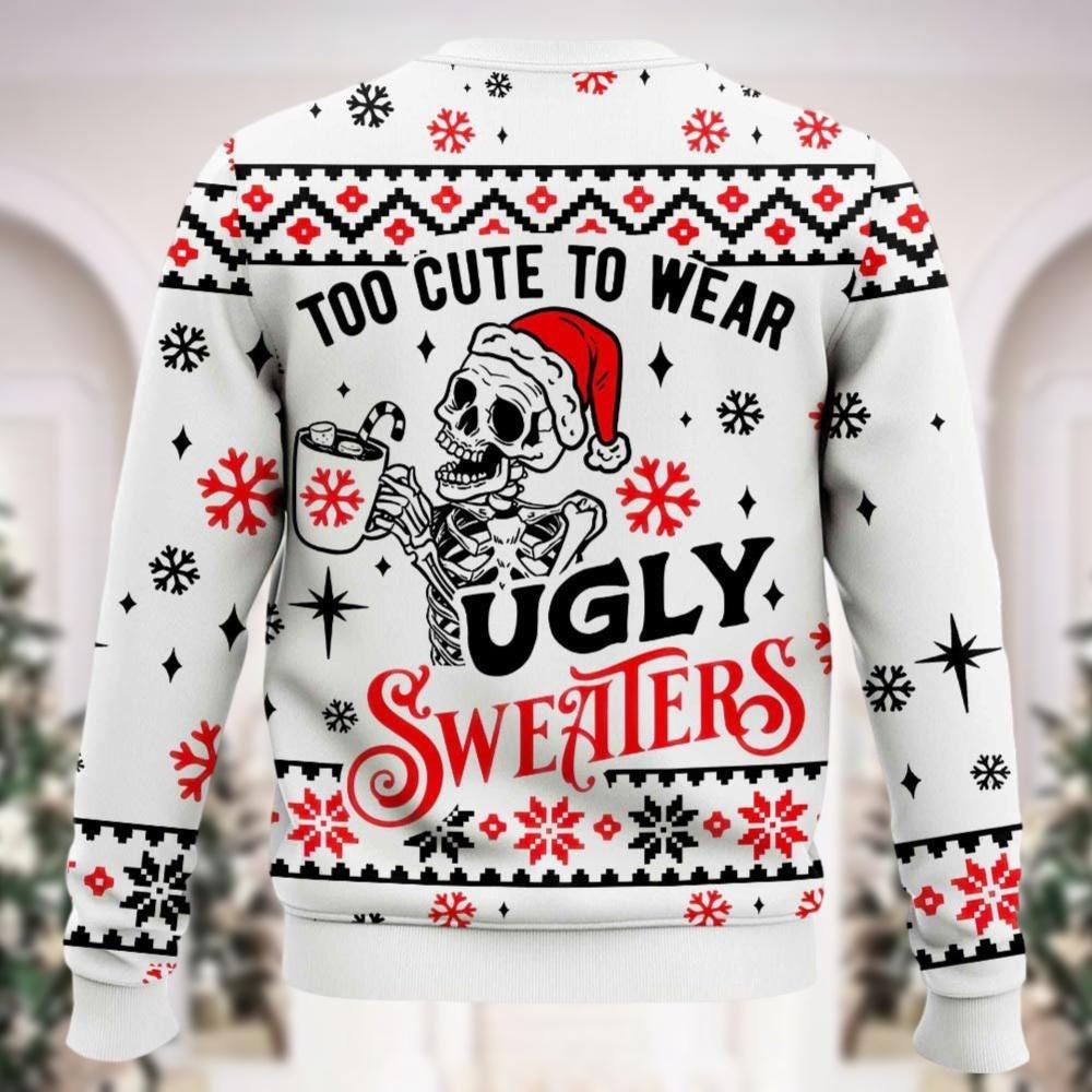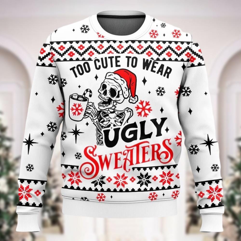 Santa Skeleton Ugly Christmas Sweater Too Cute To Wear Christmas Sweatshirt Funny Christmas Sweater Family Holiday Shirt Xmas Gift