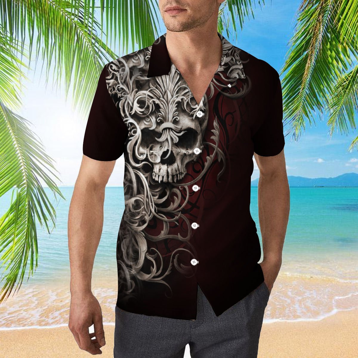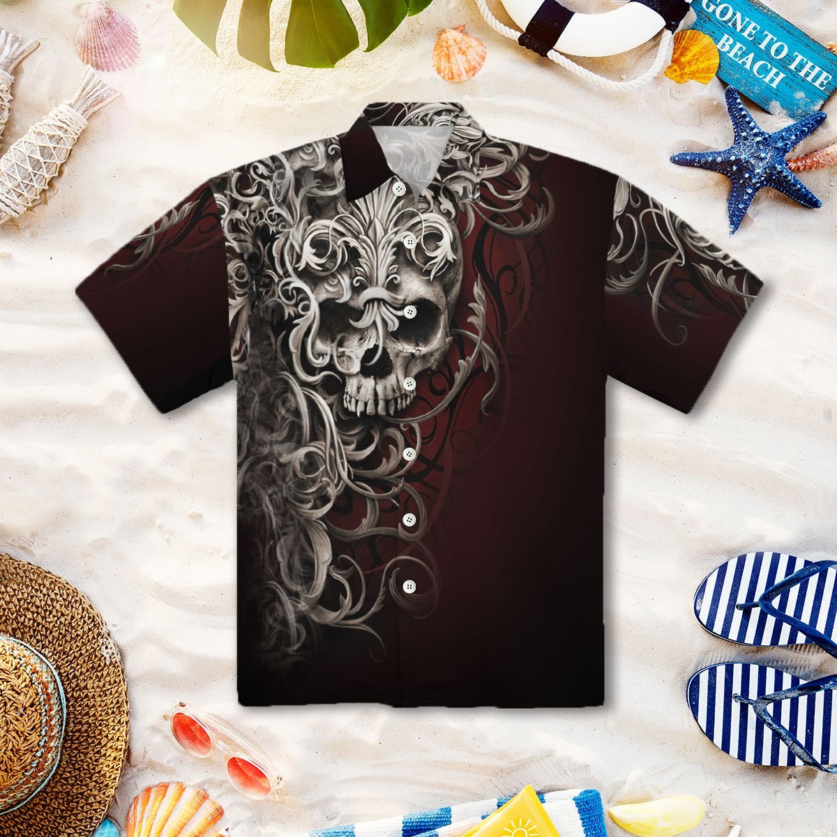 Shoulder Wrap Skull Hawaiian Shirt- For men and women – Fanshubus