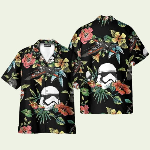 Hawaiian Shirt featuring iconic Star Wars characters, perfect for fans of the galaxy far, far away.