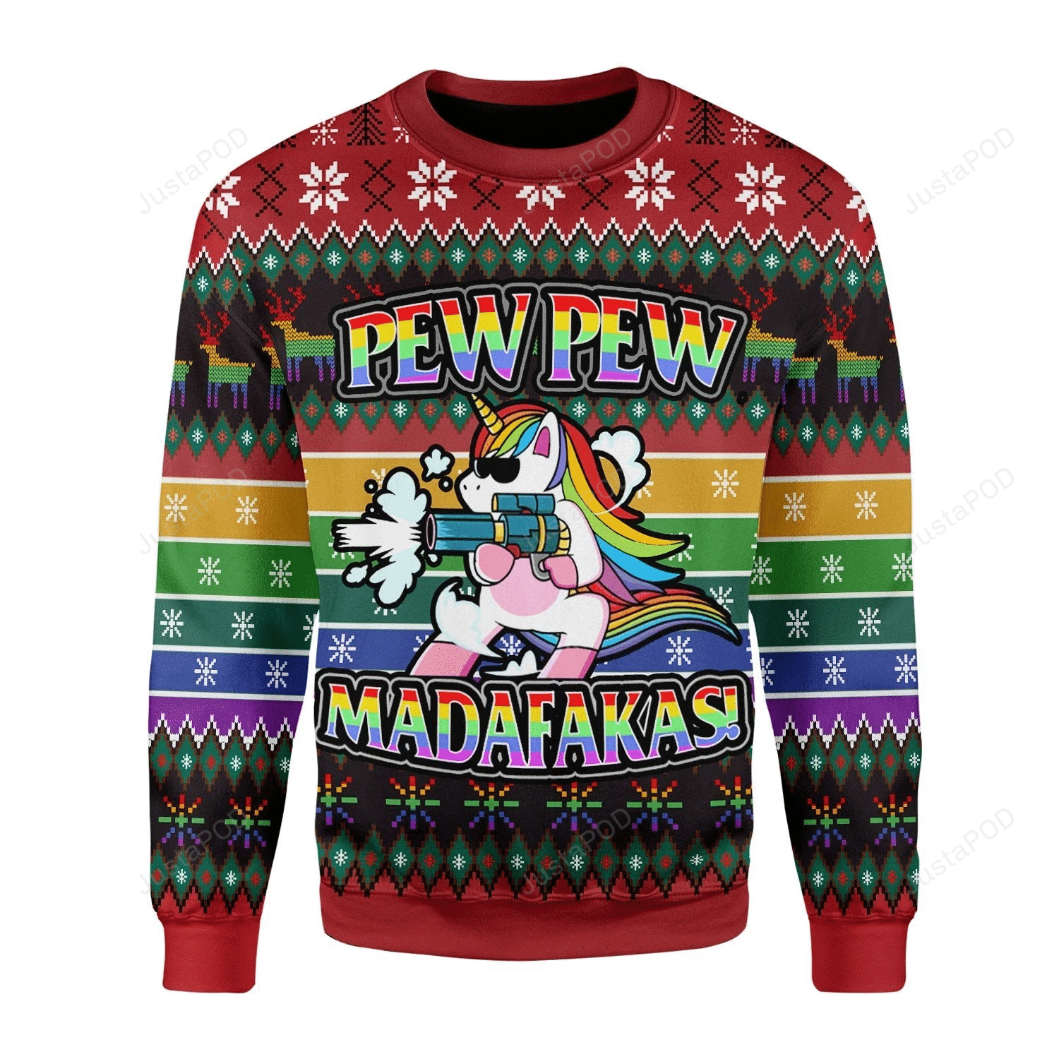 Unicorn Lgbt Pew Pew Ugly Christmas Sweater