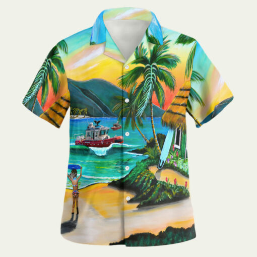 US Coast Guard 25 foot Defender Class Boat Hawaiian Shirt