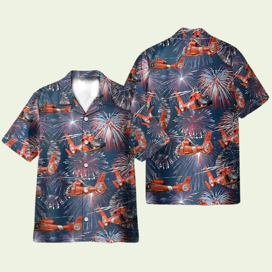 Us Coast Guard Helicopter Eurocopter Mh65 Dolphin Hawaiian Shirt
