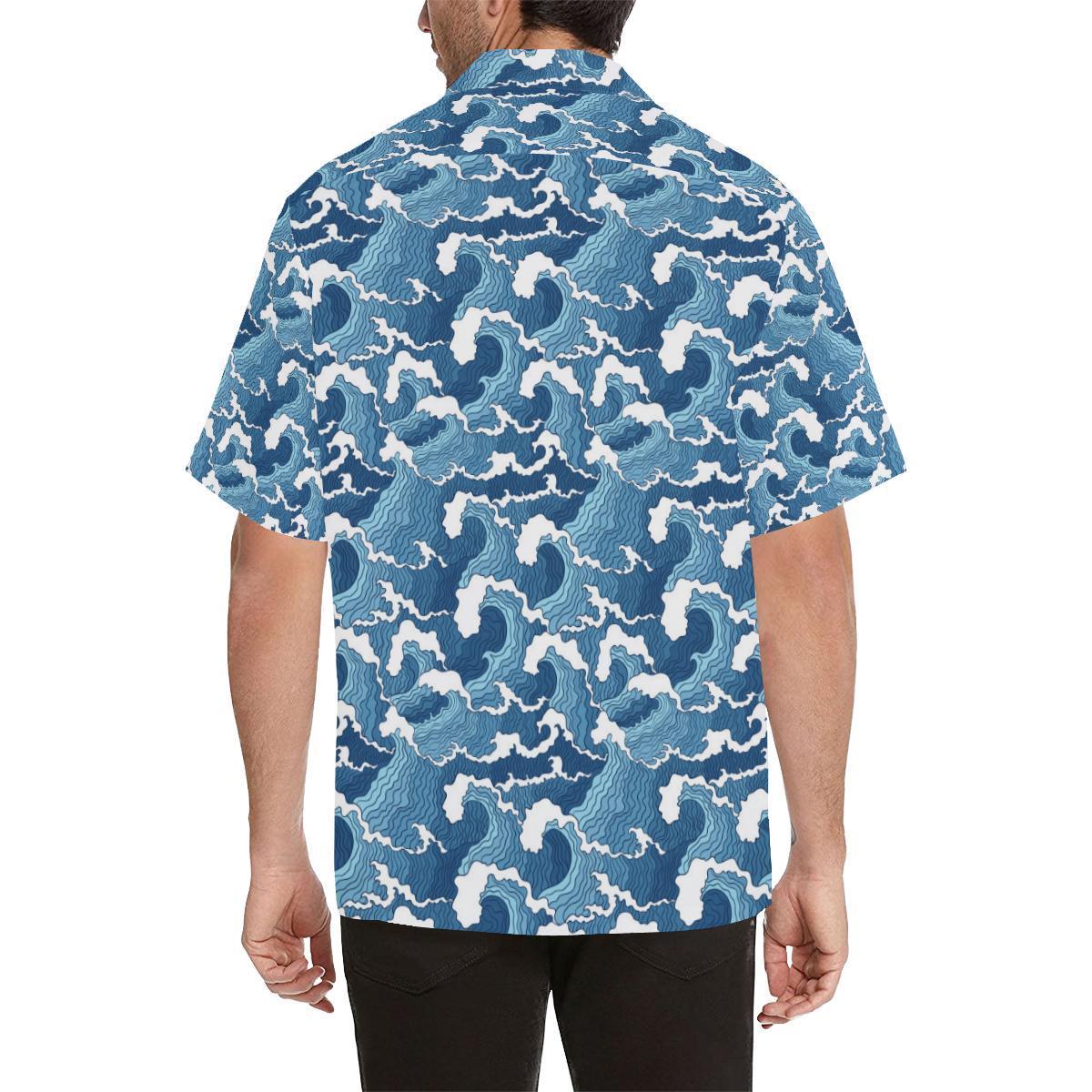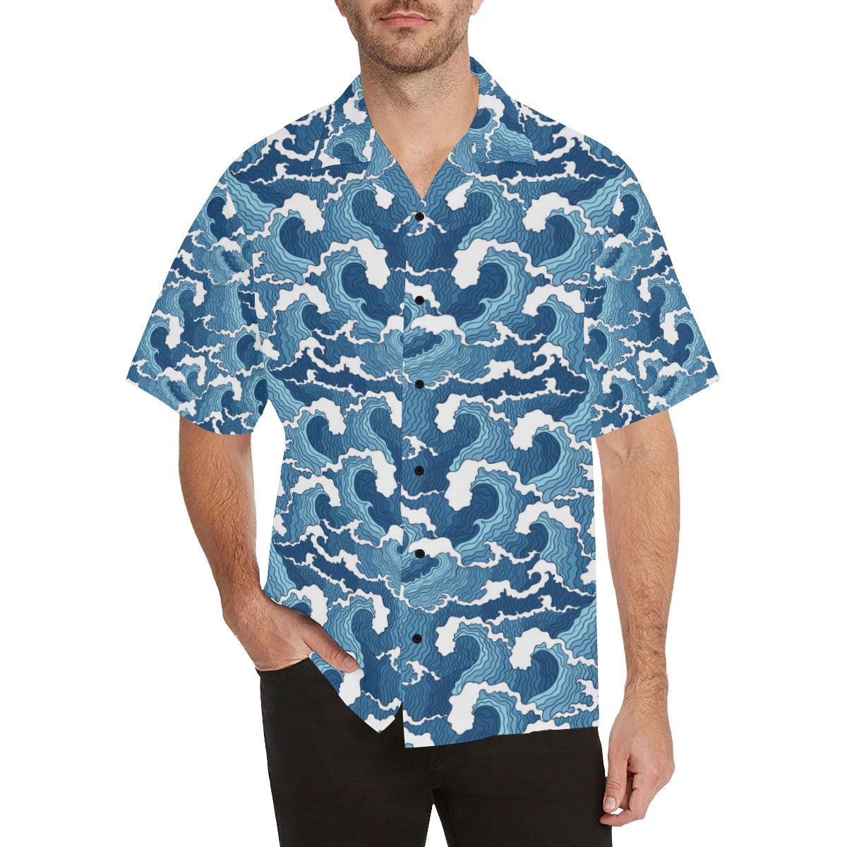 Wave Themed Pattern Print Hawaiian Shirt- For men and women – Fanshubus